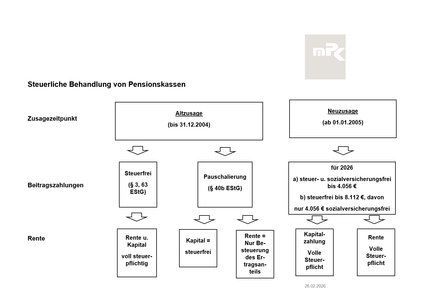 - Steuerliche und sozialversicherungsrechtliche Behandlung von Pensionskassen